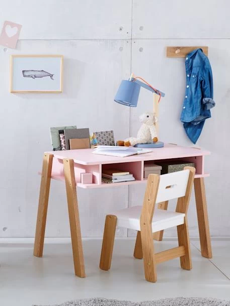 Chaise maternelle en panneaux de fibres de bois et placage frĂŞne.