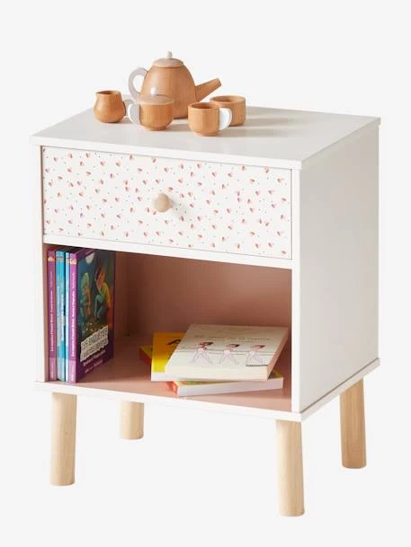 Chevet enfant LIGNE LÉA en panneaux de fibres de bois, pieds et poignées en hévéa, finition peinture à l’eau.