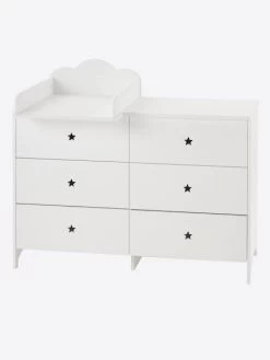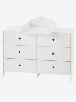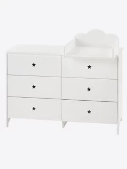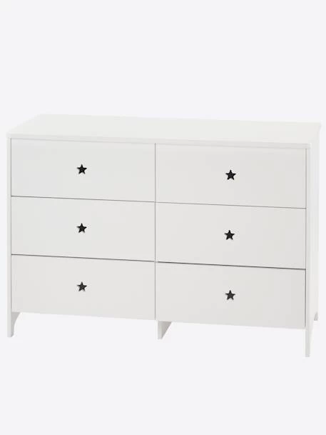 Jolie et pratique, cette commode de la ligne Sirius offre 6 tiroirs pour ranger les vĂŞtements de votre enfant. Ses poignĂ©es prennent la forme d’Ă©toiles dĂ©coupĂ©es pour une dĂ©co de chambre féérique !