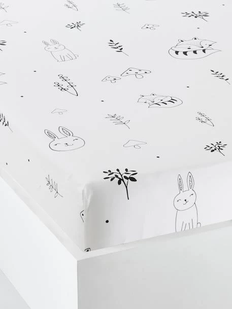 Un drap housse aux imprimés poétiques, qui complète la housse de couette et taie d’oreiller Forêt magique, vendus sur ce site.