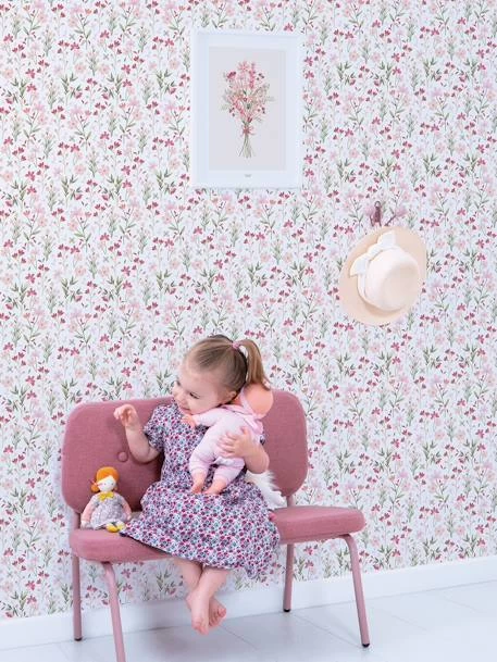 Explosion de fleurs avec ce papier peint composé de petites roses sur fond vert pour créer un véritable jardin dans la chambre de votre enfant !