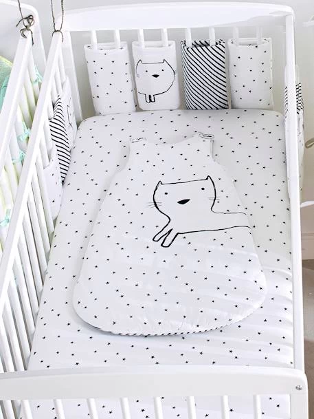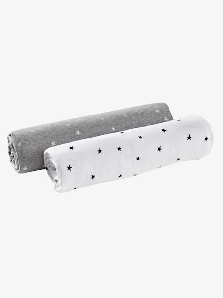 - Drap-housse bébés vendu en lot de 2 (1 blanc imprimé étoiles couleur+ 1 couleur imprimé étoiles blanches)
