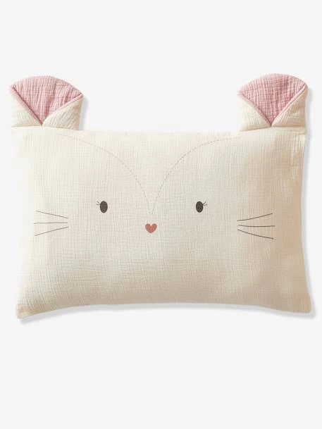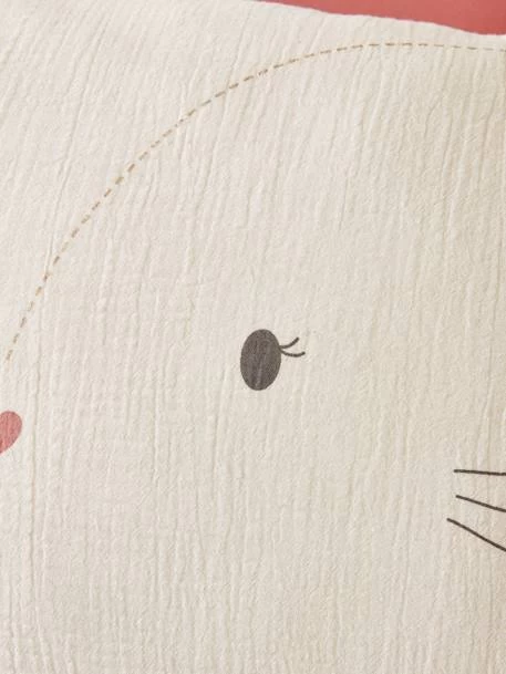 Avec ses deux oreilles en volume et son visage souris, cette taie d’oreiller en gaze de coton accompagne les enfants pour de très jolis rêves !
