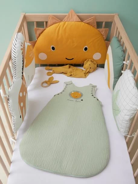 A la fois déco, confortable et anti choc, le tour de lit / tour de parc rassure les enfants en les entourant de douceur et en reproduisant le cocon de la maternité. Bébé pourra s’éveiller en toute sécurité, sans risquer de se cogner contre les barreaux. Les éléments modulables se fixent par nouettes et permettent une bonne circulation de l’air.